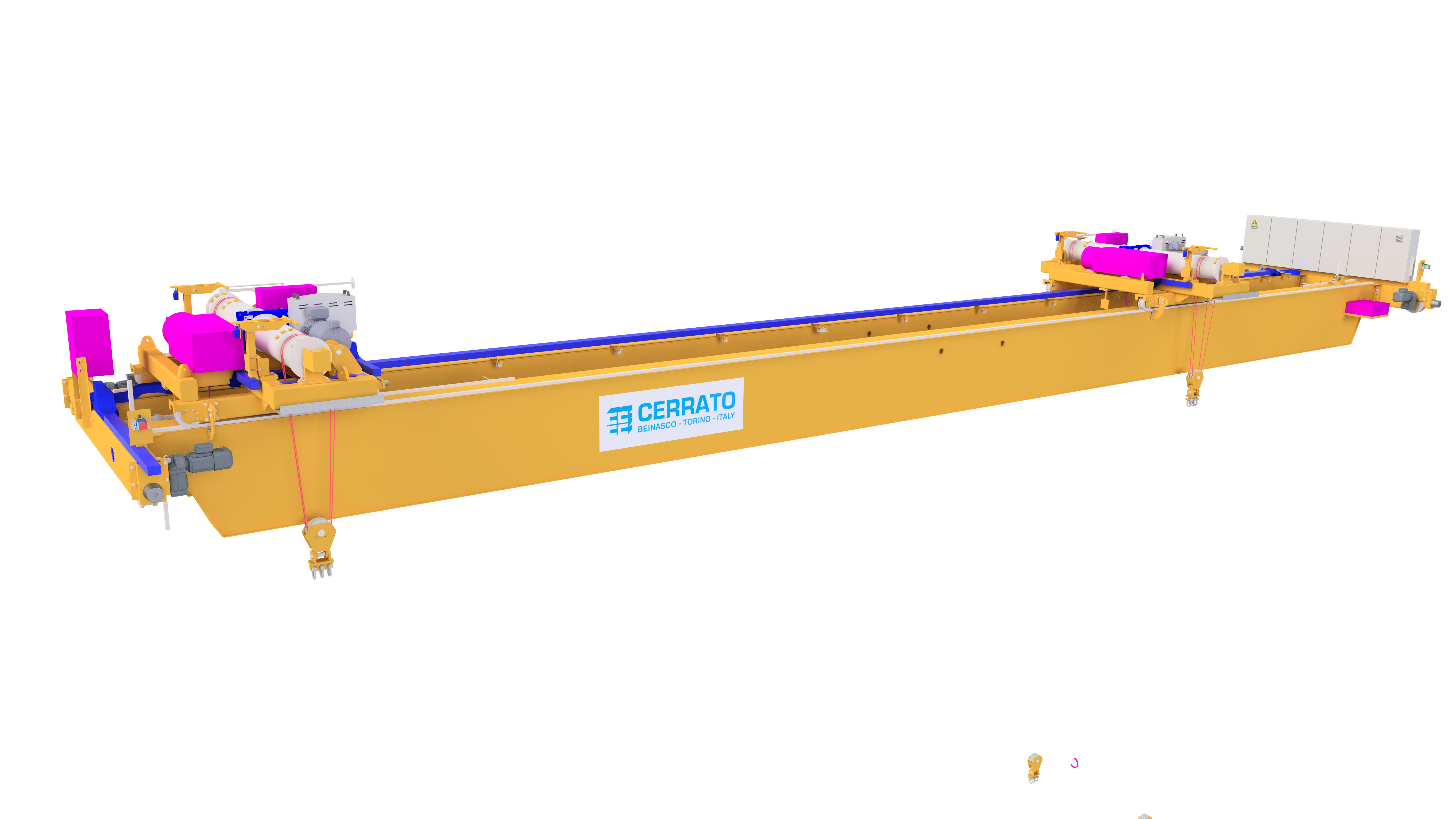 Componenti: Gruppi di sollevamento, gruppi ruota, bozzelli e altri elementi dimensionati per prestazioni elevate e manutenzione semplificata